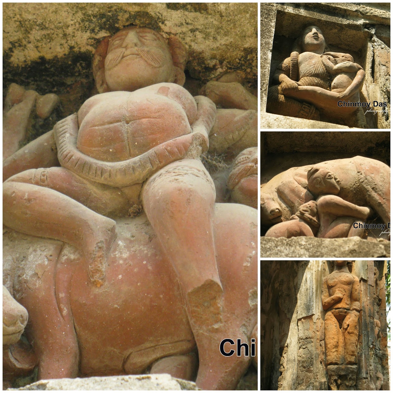 তিনটি বৈশিষ্টের কথা বলতে হয় এই মন্দিরের। ১. পলেস্তারা তো নাই-ই. একটিও টেরাকোটা ফলক নাই মন্দিরে। তবুও কেবল ইটের কারিকুরিতে কত ভাস্কর্য ফুটিয়ে তোলা যায়, তার কিছু নমুনা পাওয়া যাবে এখানে। সামনের দেওয়াল জুড়ে তার বহু নিদর্শন চিত্রিত আছে এর দেওয়ালে।