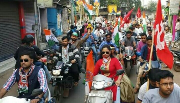 নিজস্ব সংবাদদাতা: শেষ বেলার প্রচারে অন্ততঃ একটা বিষয়ে এগিয়ে ছিল বাম-কংগ্রেস জোট আর সেটা হল যৌবনের উদ্দীপ্ত মিছিল। শনিবার বিকাল আড়াইটা থেকে প্রচারের নির্ঘণ্ট শেষ হওয়ার আগে অবধি গোলবাজার থেকে নিমপুরা, মালঞ্চ, খরিদা দেখেছে সেই যৌবন। না , যৌবন উদ্দীপ্ত সেই বাইক মিছিলের তারুণ্যের স্পন্দন বিজেপি বা তৃণমূলের মিছিলের সামনে আসেনি।