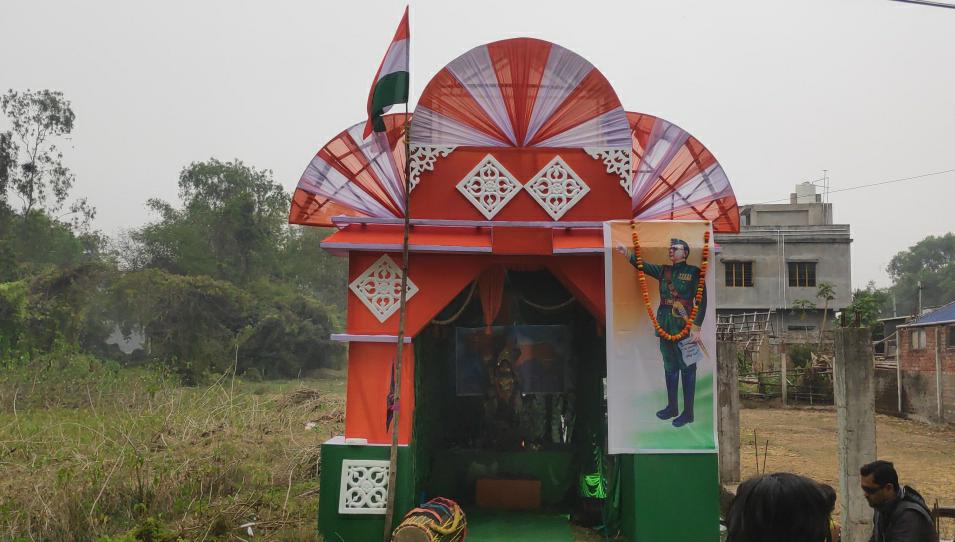 নিজস্ব সংবাদদাতা: সারা দেশ জুড়ে বৃহস্পতিবার নেতাজি ১২৩ জন্মদিবস পালিত হচ্ছে অথচ পশ্চিম মেদিনীপুরের বেলদাতে দেখা গেল নেতাজির একটা ছবিকে মণ্ডপের বাইরে টাঙিয়ে রেখে মণ্ডপের ভেতরে ভারতমাতার মূর্তি রেখে পুজো করল বিজেপির ছাত্র সংগঠন অখিল ভারতীয় বিদ্যার্থী পরিষদ। আর এই ঘটনায় প্রশ্ন তুলেছে তৃনমূল ছাত্রপরিষদ।