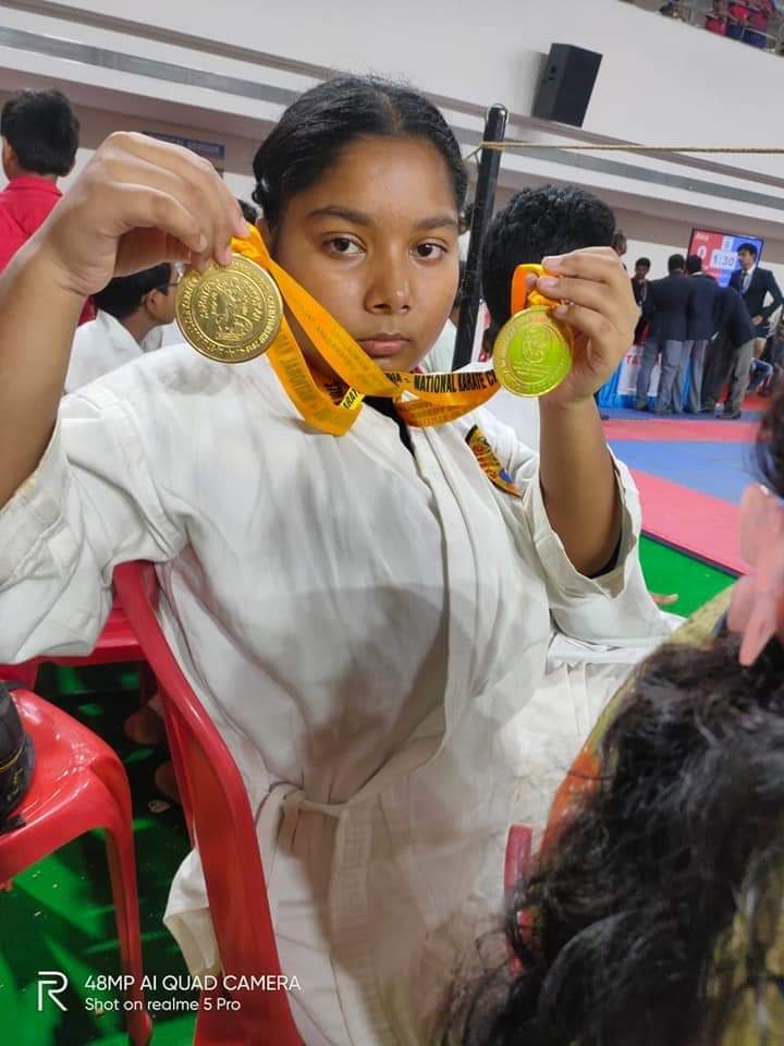 নিজস্ব সংবাদদাতা: একটা নয়, দু’ দুটো সোনার মেডেল গলায় ঝুলিয়ে সবংয়ের সোনার মেয়ে সম্প্রীতা। কর্ণাটকের ম্যাংগালোরে চলতে থাকা ৩৭তম জাতীয় বুদোকান চ্যাম্পিয়নশিপের দুটি বিভাগে অংশ নিয়ে দুটিতেই প্রথম হয়েছে খাজুরি দশগ্রাম এমভিকেভি বালিকা বিদ্যালয়ের নবম শ্রেনীর ছাত্রী সম্প্রীতা পাল।