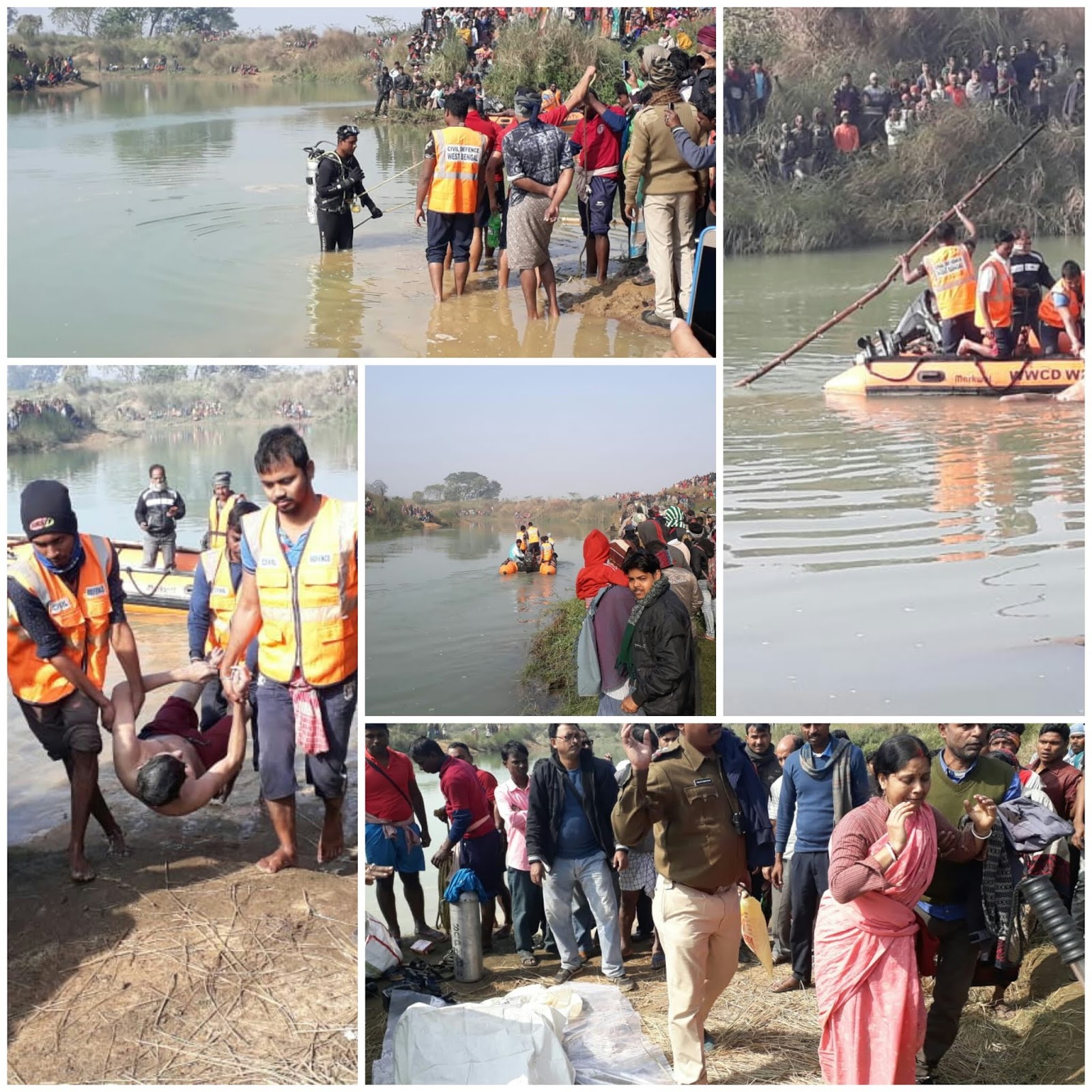জরুরি তলব পেয়ে খড়গপুর সিভিল ডিফেন্স একটি দল রবিবার সকাল থেকে বোট নামিয়ে তল্লাশি শুরু করে, আসানসোল থেকে নিয়ে আসা হয় বিপর্যয় মোকাবিলা দপ্তরের আরও একটি দলকে। এরপরই সকাল নটা নাগাদ প্রথম অর্ক রায়, শোভন কান্তি রায় নামে এই যুবকের দেহ উদ্ধার করে সিভিল ডিফেন্সের দল। আরও ঘন্টা দুয়েক পরে ডুবুরি নেমে উদ্ধার করে শুভজিৎ মঙ্গলের দেহ।
